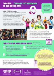We are cooperating and celebrating with our anti-bullying activities, Odd Socks days, with St. Edward’s Catholic Primary School.